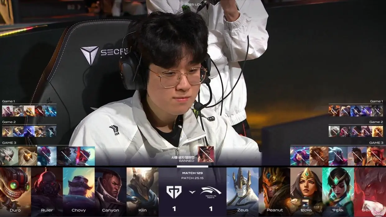 LCK由于队伍比较少,所以在55分组之后,他们的组内赛循环是3轮。本周赛程最难受的是HLE,因为他们需要在第二轮中连续对战T1和GenG,由于第三赛段的状态很差,所以很多人已经预测到了结局。今天HLE也是终于赢了GenG一小局,但最终还是没有意外1-2落败。
